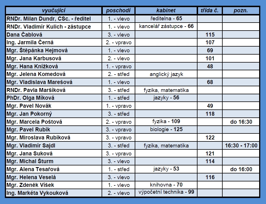 Třídní schůzky 8.4.2014 - Rozpis přítomných vyučujících